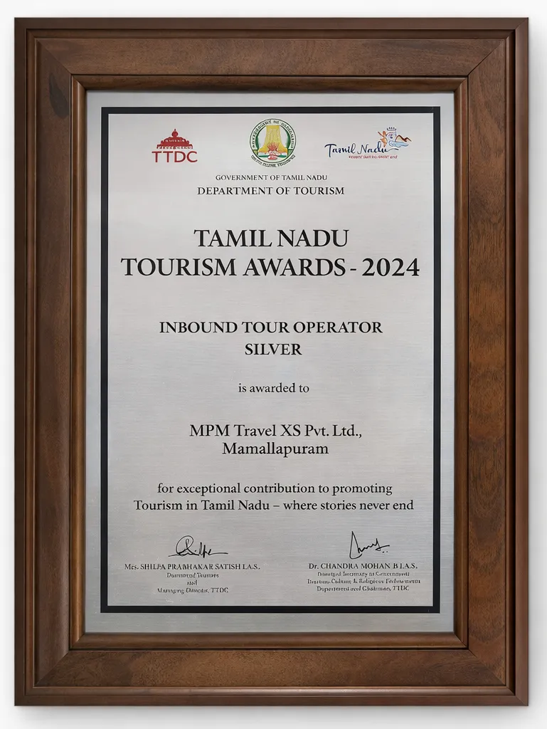 We are proud to be a Government of Tamil Nadu recognized inbound tour operator, honored multiple times for our excellence in service, destination knowledge, and responsible tourism practices. These awards reflect our consistent commitment to creating meaningful travel experiences across Tamil Nadu and India